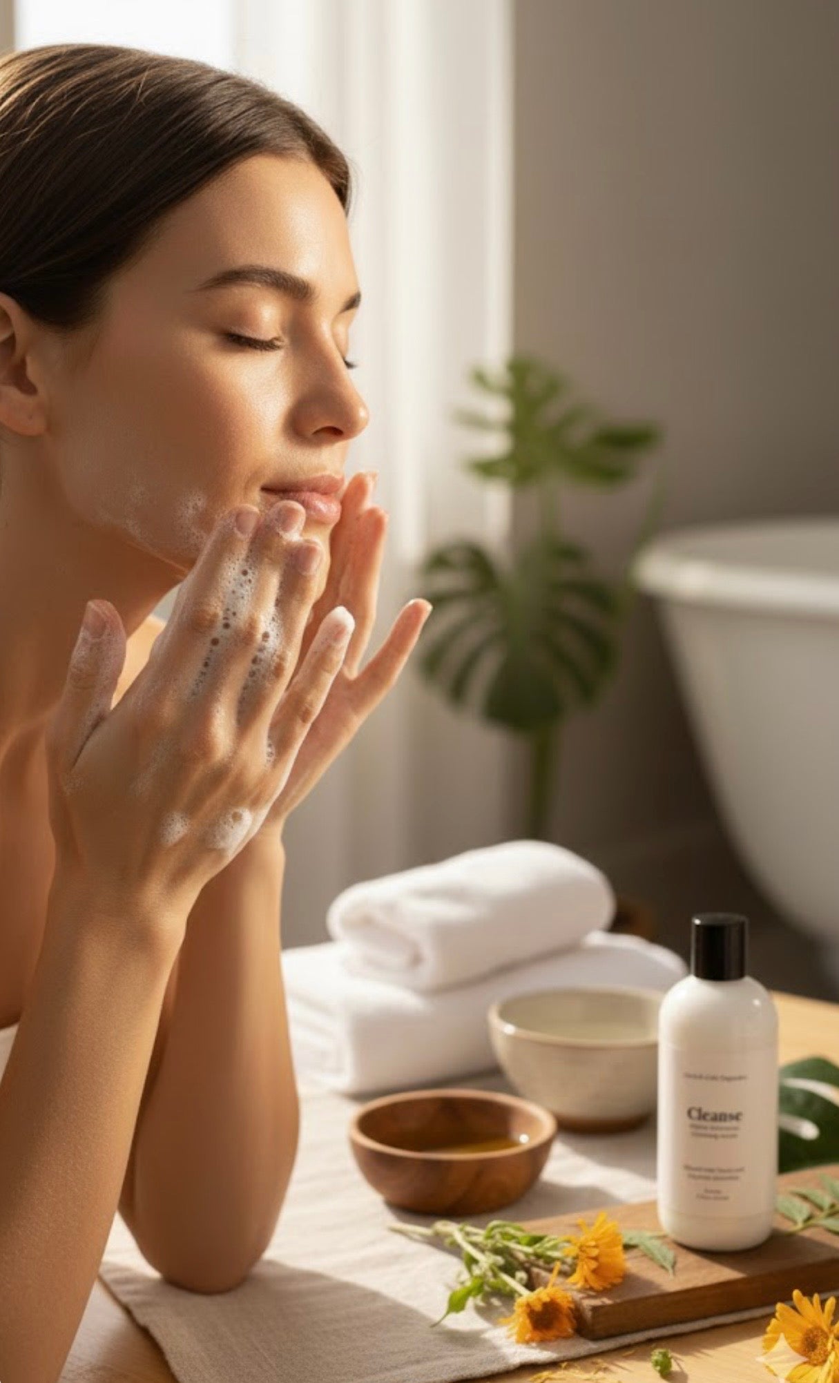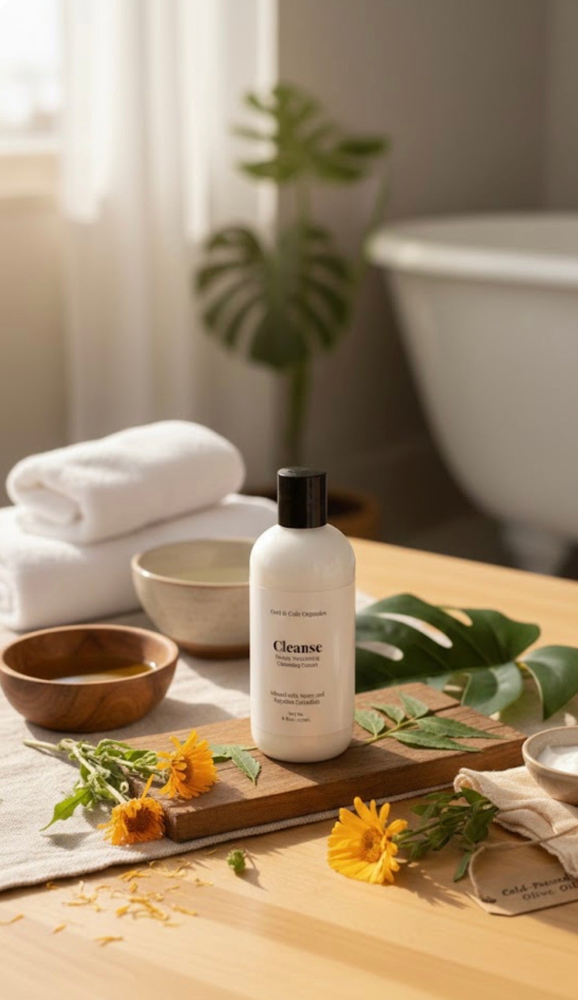 A natural, gentle facial cleansing cream containing mild, plant-based ingredients like Egyptian calendula, aloe vera, neem, chamomile, and cucumber extract. This creams is designed to effectively cleanse the skin without the use of any harsh chemicals or irritants. Cleanse aims to remove dirt, oil, and impurities while maintaining the skin's natural moisture balance and leaving it feeling soft, refreshed and deeply nourished.